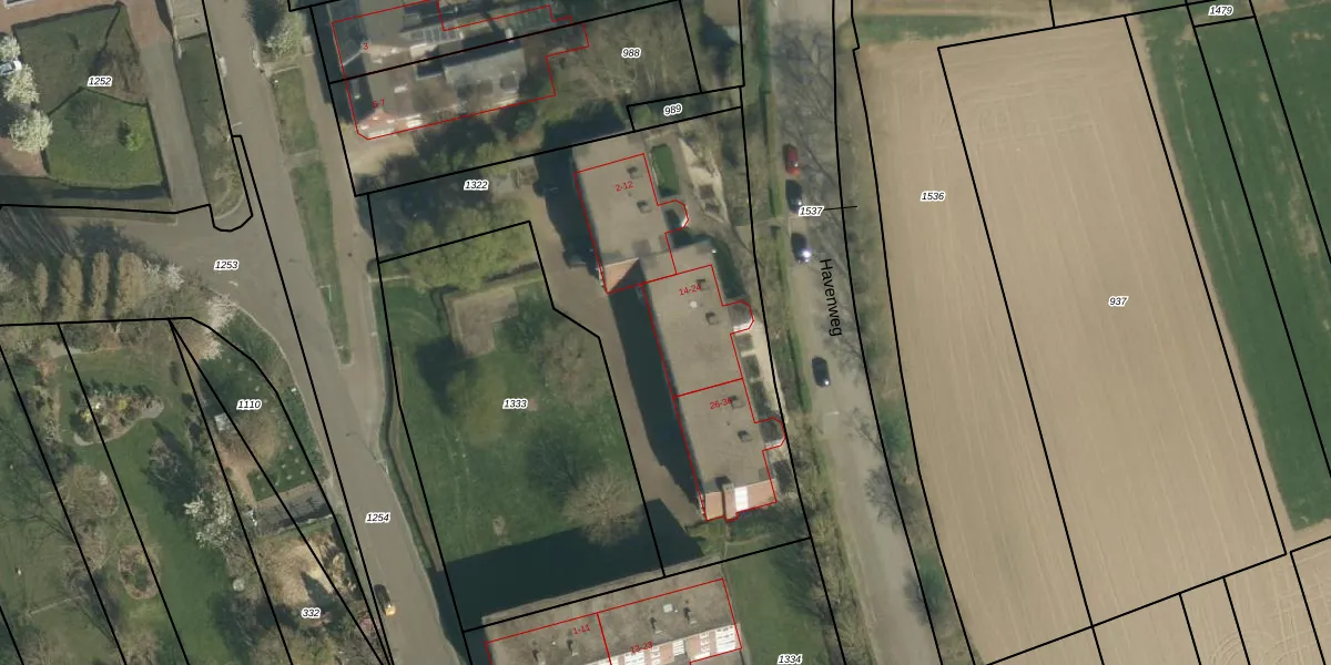 Havenweg 14-G3 is gelegen op kadastraal perceel BOR00H1322. Deze kadastrale aanduiding is uniek en wordt gebruikt door het Kadaster om eigendomsrechten en andere zakelijke rechten vast te leggen. Het perceel maakt onderdeel uit van de kadastrale gemeente Born.