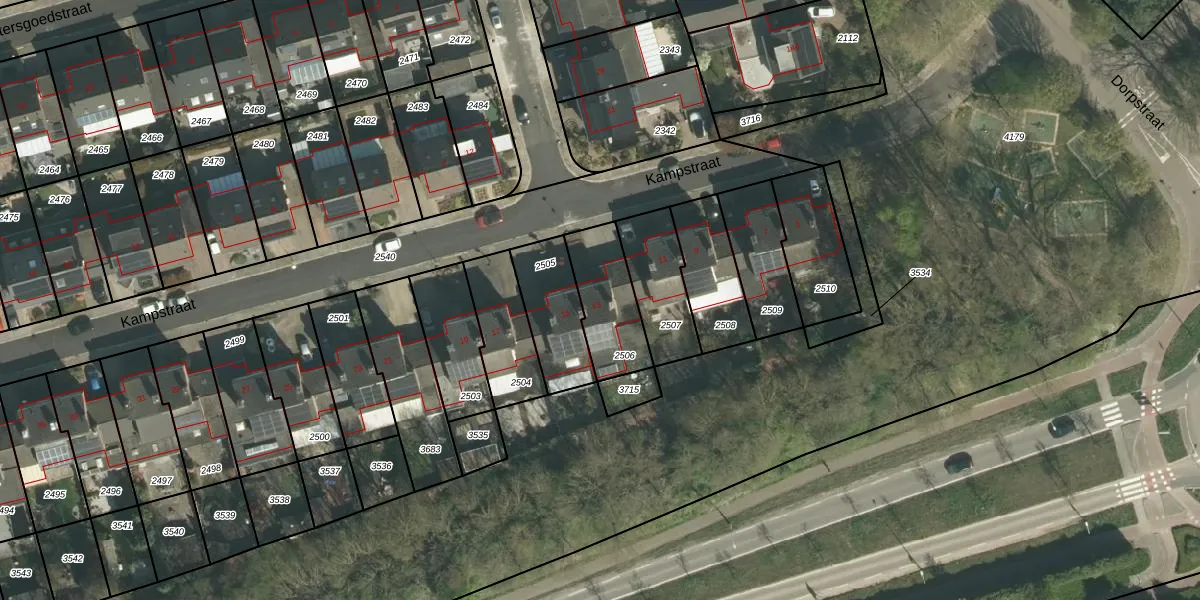Kampstraat 13 is gelegen op kadastraal perceel BOR00F2506. Deze kadastrale aanduiding is uniek en wordt gebruikt door het Kadaster om eigendomsrechten en andere zakelijke rechten vast te leggen. Het perceel maakt onderdeel uit van de kadastrale gemeente Born.