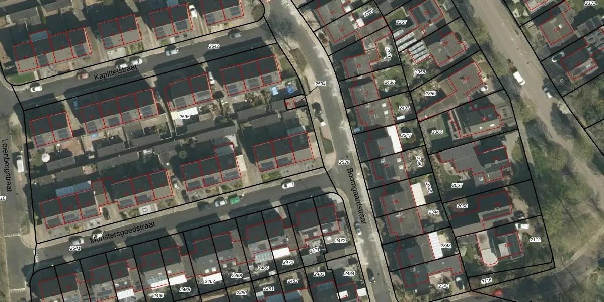 Munstersgoedstraat 2 is gelegen op kadastraal perceel BOR00F2595. Deze kadastrale aanduiding is uniek en wordt gebruikt door het Kadaster om eigendomsrechten en andere zakelijke rechten vast te leggen. Het perceel maakt onderdeel uit van de kadastrale gemeente Born.