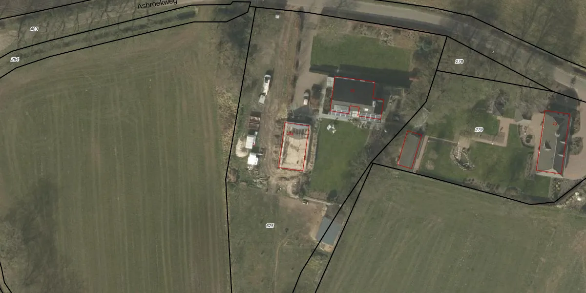 Het perceel waarop Asbroekweg 15-a staat heeft een oppervlakte van 5095 m². Dit is een zeer groot perceel. De perceeloppervlakte wordt geregistreerd door het Kadaster. Gedetailleerde informatie over de maten van dit perceel kunt u vinden in het rapport Kadastrale kaart met maatvoering van Asbroekweg 15-a.