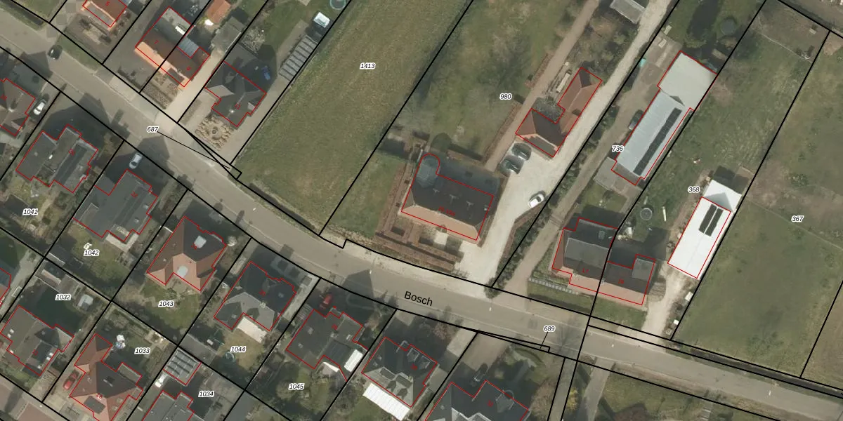 Bosch 15 is gelegen op kadastraal perceel BDL02K980. Deze kadastrale aanduiding is uniek en wordt gebruikt door het Kadaster om eigendomsrechten en andere zakelijke rechten vast te leggen. Het perceel maakt onderdeel uit van de kadastrale gemeente Budel.