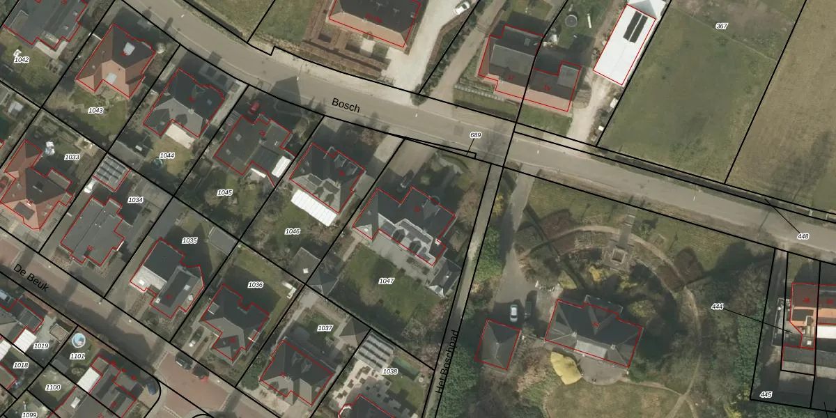 Bosch 32 is gelegen op kadastraal perceel BDL02K1047. Deze kadastrale aanduiding is uniek en wordt gebruikt door het Kadaster om eigendomsrechten en andere zakelijke rechten vast te leggen. Het perceel maakt onderdeel uit van de kadastrale gemeente Budel.