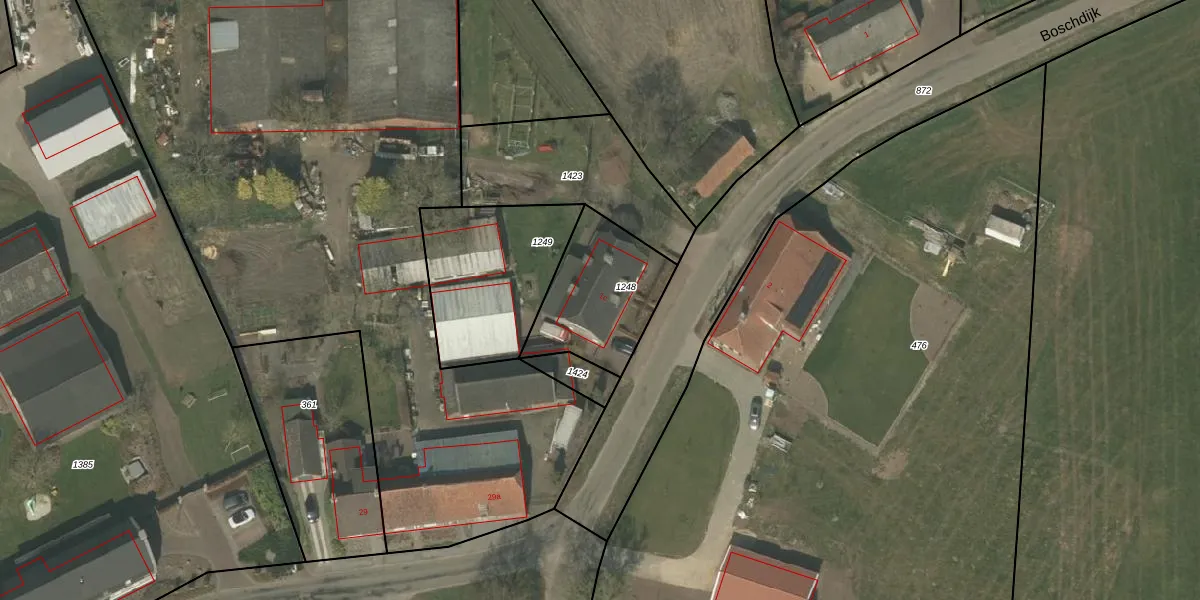 Het perceel waarop Boschdijk 1-c staat heeft een oppervlakte van 405 m². Dit is een groot perceel. De perceeloppervlakte wordt geregistreerd door het Kadaster. Gedetailleerde informatie over de maten van dit perceel kunt u vinden in het rapport Kadastrale kaart met maatvoering van Boschdijk 1-c.