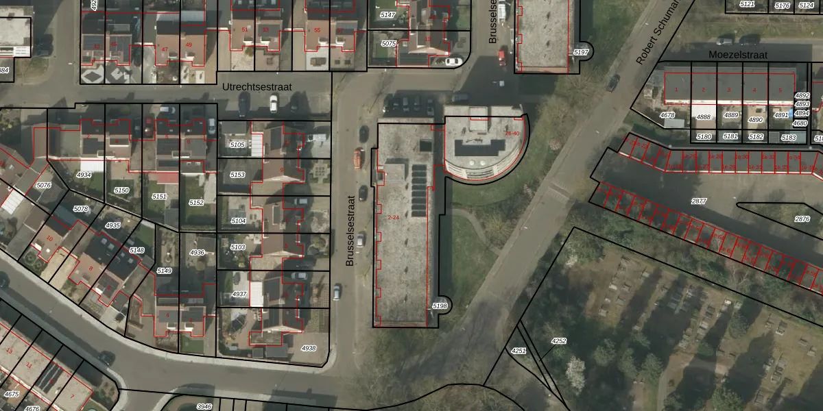 Het perceel waarop Brusselsestraat 20 staat heeft een oppervlakte van 1132 m². Dit is een zeer groot perceel. De perceeloppervlakte wordt geregistreerd door het Kadaster. Gedetailleerde informatie over de maten van dit perceel kunt u vinden in het rapport Kadastrale kaart met maatvoering van Brusselsestraat 20.