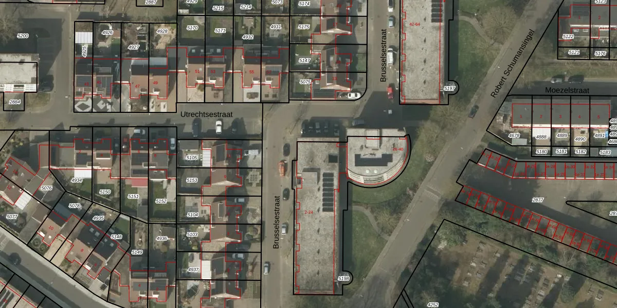 Het perceel waarop Brusselsestraat 22 staat heeft een oppervlakte van 1132 m². Dit is een zeer groot perceel. De perceeloppervlakte wordt geregistreerd door het Kadaster. Gedetailleerde informatie over de maten van dit perceel kunt u vinden in het rapport Kadastrale kaart met maatvoering van Brusselsestraat 22.