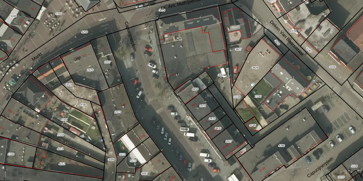 Het perceel waarop Capucijnerplein 1-a staat heeft een oppervlakte van 182 m². Dit is een middelgroot perceel. De perceeloppervlakte wordt geregistreerd door het Kadaster. Gedetailleerde informatie over de maten van dit perceel kunt u vinden in het rapport Kadastrale kaart met maatvoering van Capucijnerplein 1-a.
