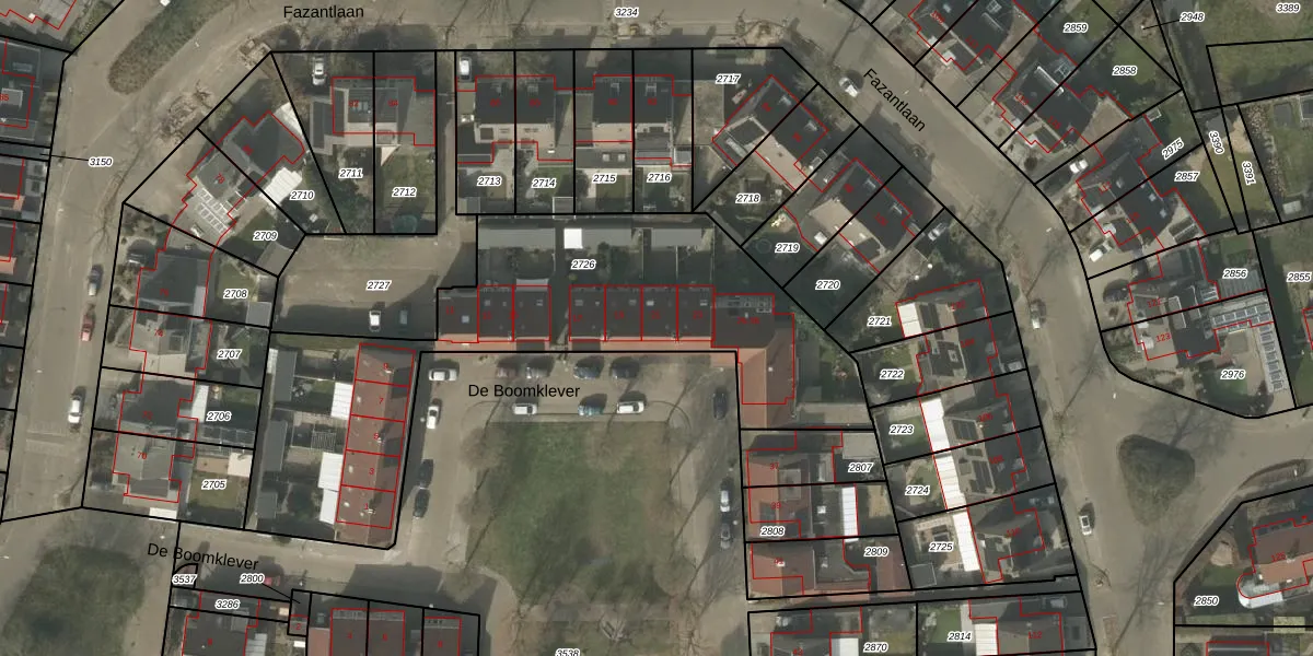 Het perceel waarop De Boomklever 21 staat heeft een oppervlakte van 1975 m². Dit is een zeer groot perceel. De perceeloppervlakte wordt geregistreerd door het Kadaster. Gedetailleerde informatie over de maten van dit perceel kunt u vinden in het rapport Kadastrale kaart met maatvoering van De Boomklever 21.