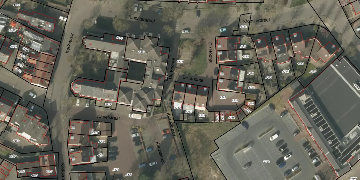 De Boonte 13 is gelegen op kadastraal perceel BDL02F4230. Deze kadastrale aanduiding is uniek en wordt gebruikt door het Kadaster om eigendomsrechten en andere zakelijke rechten vast te leggen. Het perceel maakt onderdeel uit van de kadastrale gemeente Budel.
