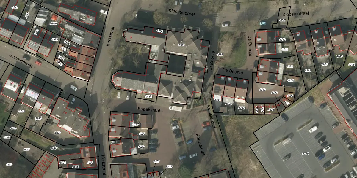 Het perceel waarop De Boonte 26 staat heeft een oppervlakte van 766 m². Dit is een groot perceel. De perceeloppervlakte wordt geregistreerd door het Kadaster. Gedetailleerde informatie over de maten van dit perceel kunt u vinden in het rapport Kadastrale kaart met maatvoering van De Boonte 26.
