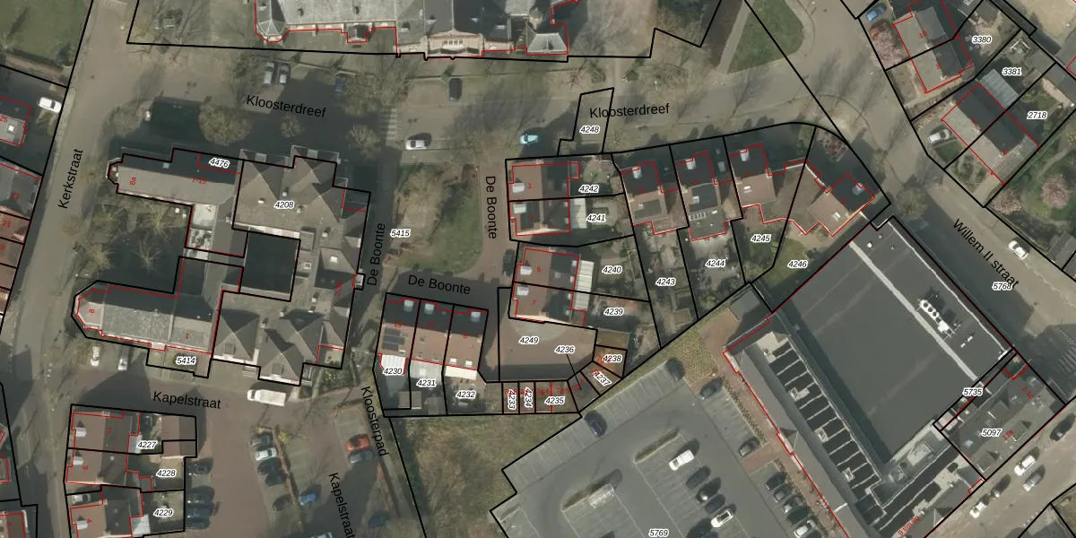 De Boonte 5 is gelegen op kadastraal perceel BDL02F4240. Deze kadastrale aanduiding is uniek en wordt gebruikt door het Kadaster om eigendomsrechten en andere zakelijke rechten vast te leggen. Het perceel maakt onderdeel uit van de kadastrale gemeente Budel.