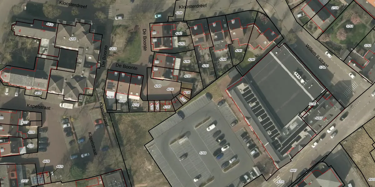 Gebruik de zoekbalk of klik op een perceel voor informatie over de adressen binnen dit perceel.