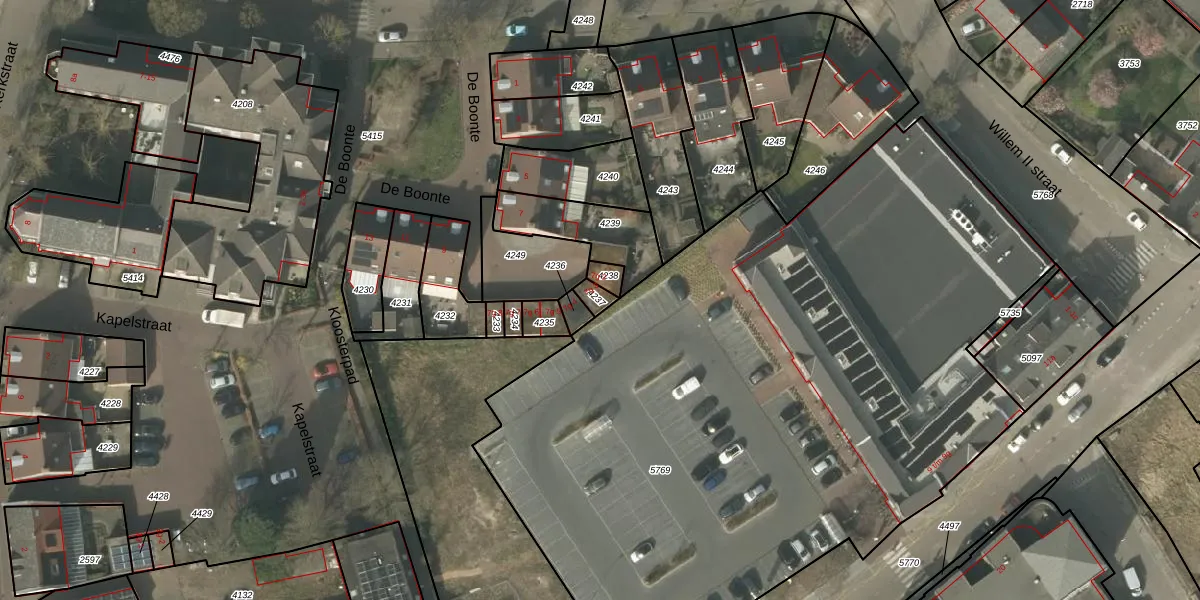 De Boonte 7-g-3 is gelegen op kadastraal perceel BDL02F4237. Deze kadastrale aanduiding is uniek en wordt gebruikt door het Kadaster om eigendomsrechten en andere zakelijke rechten vast te leggen. Het perceel maakt onderdeel uit van de kadastrale gemeente Budel.