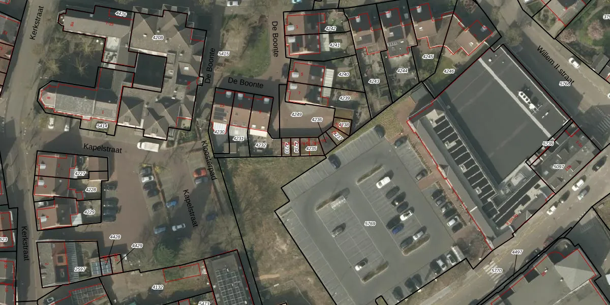 De Boonte 7-g-6 is gelegen op kadastraal perceel BDL02F4235. Deze kadastrale aanduiding is uniek en wordt gebruikt door het Kadaster om eigendomsrechten en andere zakelijke rechten vast te leggen. Het perceel maakt onderdeel uit van de kadastrale gemeente Budel.