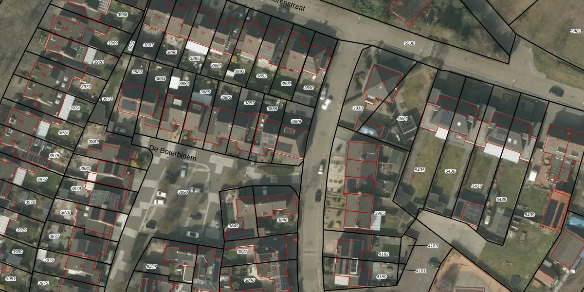 Het perceel waarop De Boterbloem 2 staat heeft een oppervlakte van 211 m². Dit is een middelgroot perceel. De perceeloppervlakte wordt geregistreerd door het Kadaster. Gedetailleerde informatie over de maten van dit perceel kunt u vinden in het rapport Kadastrale kaart met maatvoering van De Boterbloem 2.