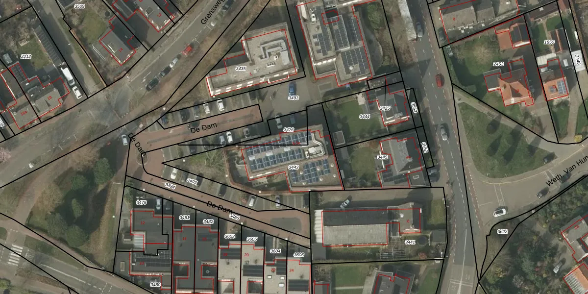 De Dam 5 is gelegen op kadastraal perceel BDL02C3443. Deze kadastrale aanduiding is uniek en wordt gebruikt door het Kadaster om eigendomsrechten en andere zakelijke rechten vast te leggen. Het perceel maakt onderdeel uit van de kadastrale gemeente Budel.