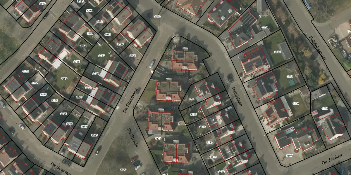 Het perceel waarop De Roodborst 7 staat heeft een oppervlakte van 3550 m². Dit is een zeer groot perceel. De perceeloppervlakte wordt geregistreerd door het Kadaster. Gedetailleerde informatie over de maten van dit perceel kunt u vinden in het rapport Kadastrale kaart met maatvoering van De Roodborst 7.