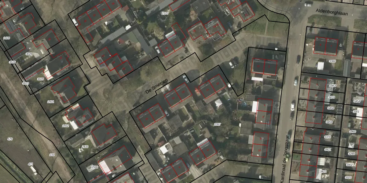 De Smeelen 15 is gelegen op kadastraal perceel BDL02C2357. Deze kadastrale aanduiding is uniek en wordt gebruikt door het Kadaster om eigendomsrechten en andere zakelijke rechten vast te leggen. Het perceel maakt onderdeel uit van de kadastrale gemeente Budel.