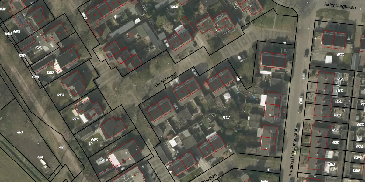 De Smeelen 16 is gelegen op kadastraal perceel BDL02C2357. Deze kadastrale aanduiding is uniek en wordt gebruikt door het Kadaster om eigendomsrechten en andere zakelijke rechten vast te leggen. Het perceel maakt onderdeel uit van de kadastrale gemeente Budel.