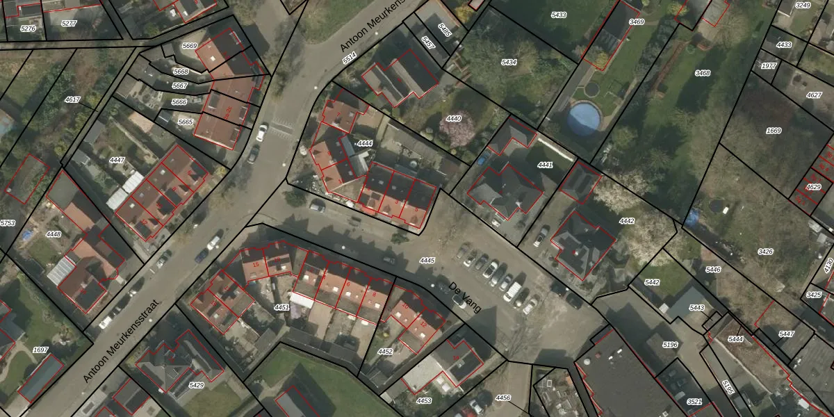 De Vang 5 is gelegen op kadastraal perceel BDL02F4444. Deze kadastrale aanduiding is uniek en wordt gebruikt door het Kadaster om eigendomsrechten en andere zakelijke rechten vast te leggen. Het perceel maakt onderdeel uit van de kadastrale gemeente Budel.