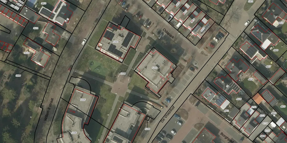 Het perceel waarop De Vroonhof 63 staat heeft een oppervlakte van 527 m². Dit is een groot perceel. De perceeloppervlakte wordt geregistreerd door het Kadaster. Gedetailleerde informatie over de maten van dit perceel kunt u vinden in het rapport Kadastrale kaart met maatvoering van De Vroonhof 63.