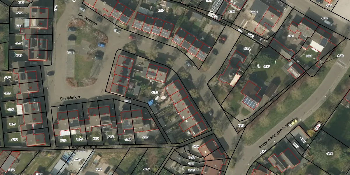 De Wieken 19 is gelegen op kadastraal perceel BDL02F4121. Deze kadastrale aanduiding is uniek en wordt gebruikt door het Kadaster om eigendomsrechten en andere zakelijke rechten vast te leggen. Het perceel maakt onderdeel uit van de kadastrale gemeente Budel.