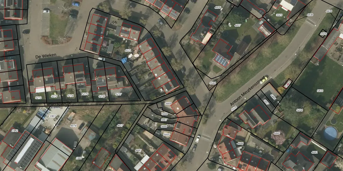 De Wieken 9 is gelegen op kadastraal perceel BDL02F4121. Deze kadastrale aanduiding is uniek en wordt gebruikt door het Kadaster om eigendomsrechten en andere zakelijke rechten vast te leggen. Het perceel maakt onderdeel uit van de kadastrale gemeente Budel.