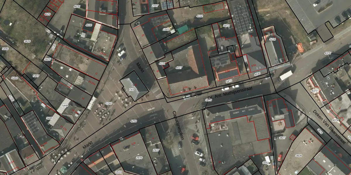 Dr. Ant. Mathijsenstraat 1 is gelegen op kadastraal perceel BDL02F4517. Deze kadastrale aanduiding is uniek en wordt gebruikt door het Kadaster om eigendomsrechten en andere zakelijke rechten vast te leggen. Het perceel maakt onderdeel uit van de kadastrale gemeente Budel.