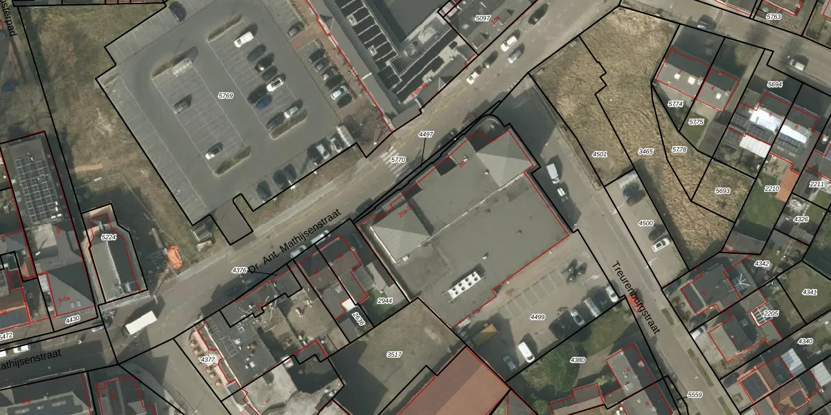 Dr. Ant. Mathijsenstraat 20 is gelegen op kadastraal perceel BDL02F4499. Deze kadastrale aanduiding is uniek en wordt gebruikt door het Kadaster om eigendomsrechten en andere zakelijke rechten vast te leggen. Het perceel maakt onderdeel uit van de kadastrale gemeente Budel.