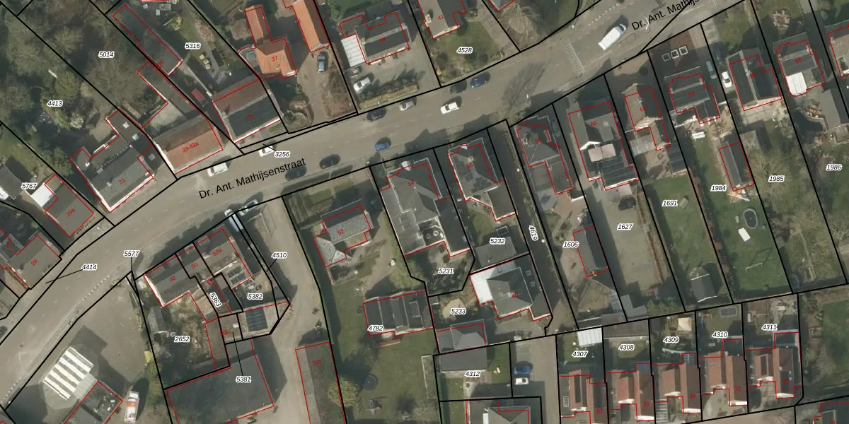 Dr. Ant. Mathijsenstraat 54-b is gelegen op kadastraal perceel BDL02F5231. Deze kadastrale aanduiding is uniek en wordt gebruikt door het Kadaster om eigendomsrechten en andere zakelijke rechten vast te leggen. Het perceel maakt onderdeel uit van de kadastrale gemeente Budel.