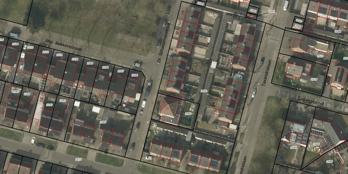 Dr. Schaepmanstraat 13 is gelegen op kadastraal perceel BDL02C2092. Deze kadastrale aanduiding is uniek en wordt gebruikt door het Kadaster om eigendomsrechten en andere zakelijke rechten vast te leggen. Het perceel maakt onderdeel uit van de kadastrale gemeente Budel.