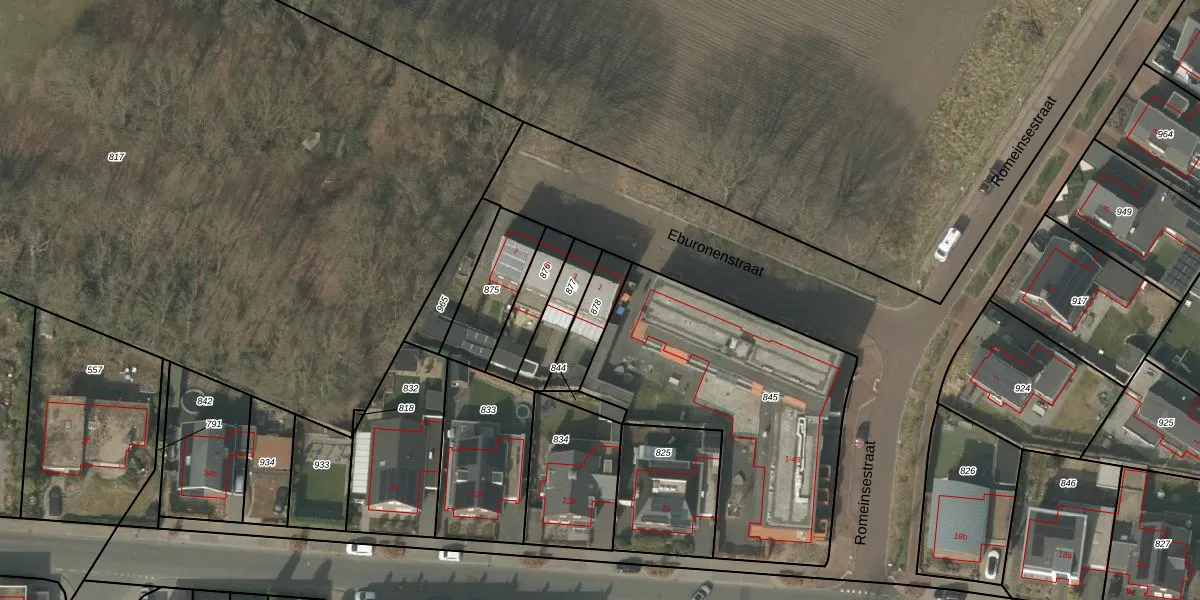 Eburonenstraat 1 is gelegen op kadastraal perceel BDL02H878. Deze kadastrale aanduiding is uniek en wordt gebruikt door het Kadaster om eigendomsrechten en andere zakelijke rechten vast te leggen. Het perceel maakt onderdeel uit van de kadastrale gemeente Budel.