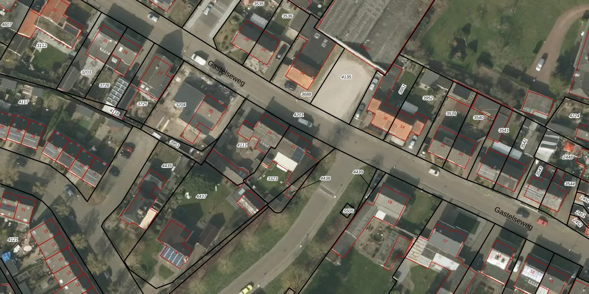 Gastelseweg 21 is gelegen op kadastraal perceel BDL02F3323. Deze kadastrale aanduiding is uniek en wordt gebruikt door het Kadaster om eigendomsrechten en andere zakelijke rechten vast te leggen. Het perceel maakt onderdeel uit van de kadastrale gemeente Budel.