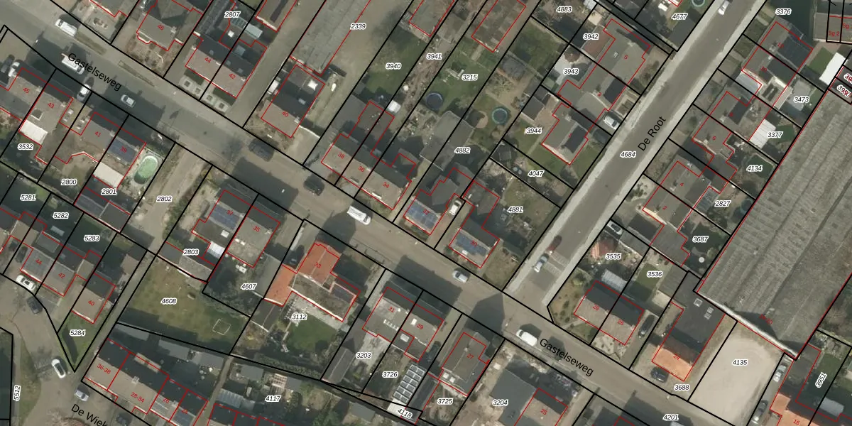 Het perceel waarop Gastelseweg 32 staat heeft een oppervlakte van 626 m². Dit is een groot perceel. De perceeloppervlakte wordt geregistreerd door het Kadaster. Gedetailleerde informatie over de maten van dit perceel kunt u vinden in het rapport Kadastrale kaart met maatvoering van Gastelseweg 32.