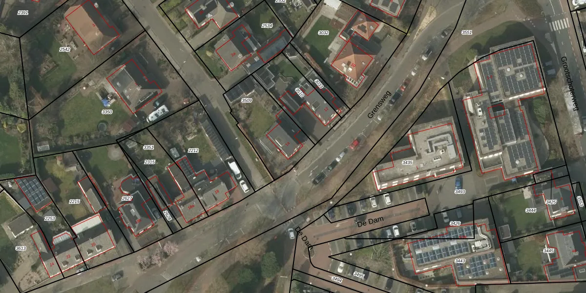 Grensweg 14 is gelegen op kadastraal perceel BDL02C3509. Deze kadastrale aanduiding is uniek en wordt gebruikt door het Kadaster om eigendomsrechten en andere zakelijke rechten vast te leggen. Het perceel maakt onderdeel uit van de kadastrale gemeente Budel.