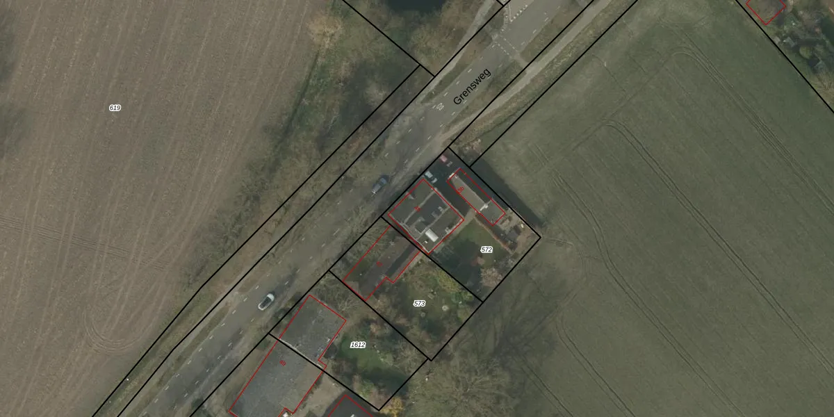 Grensweg 45 is gelegen op kadastraal perceel BDL02L572. Deze kadastrale aanduiding is uniek en wordt gebruikt door het Kadaster om eigendomsrechten en andere zakelijke rechten vast te leggen. Het perceel maakt onderdeel uit van de kadastrale gemeente Budel.