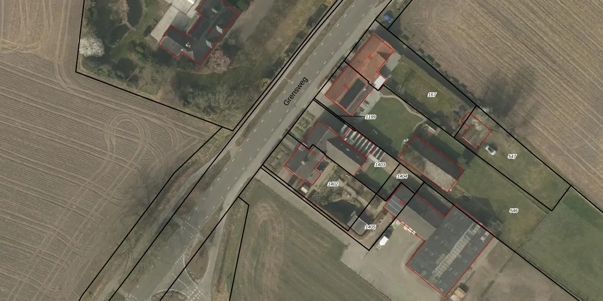 Grensweg 55 is gelegen op kadastraal perceel BDL02L1402. Deze kadastrale aanduiding is uniek en wordt gebruikt door het Kadaster om eigendomsrechten en andere zakelijke rechten vast te leggen. Het perceel maakt onderdeel uit van de kadastrale gemeente Budel.