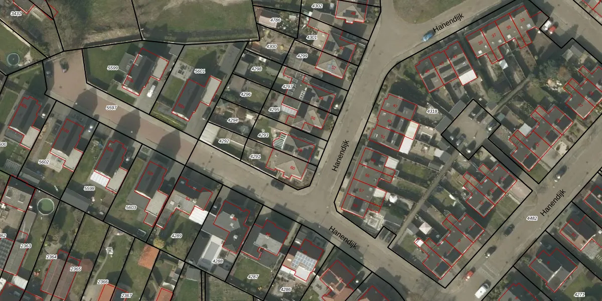 Hanendijk 58 is gelegen op kadastraal perceel BDL02F4293. Deze kadastrale aanduiding is uniek en wordt gebruikt door het Kadaster om eigendomsrechten en andere zakelijke rechten vast te leggen. Het perceel maakt onderdeel uit van de kadastrale gemeente Budel.