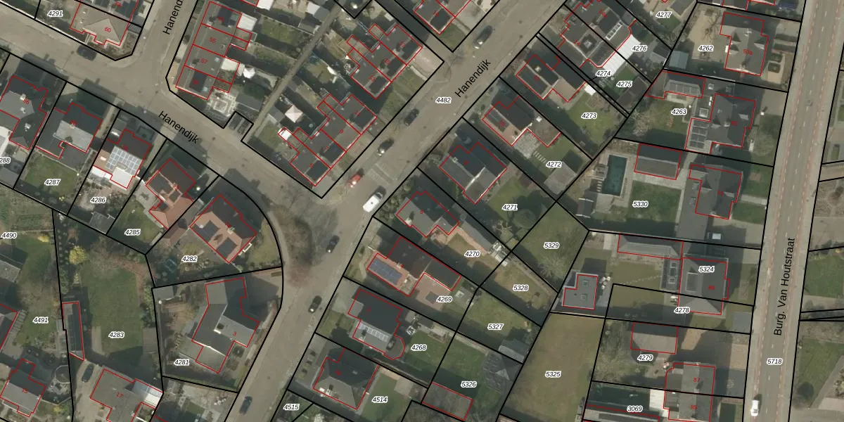 Hanendijk 6 is gelegen op kadastraal perceel BDL02F4270. Deze kadastrale aanduiding is uniek en wordt gebruikt door het Kadaster om eigendomsrechten en andere zakelijke rechten vast te leggen. Het perceel maakt onderdeel uit van de kadastrale gemeente Budel.
