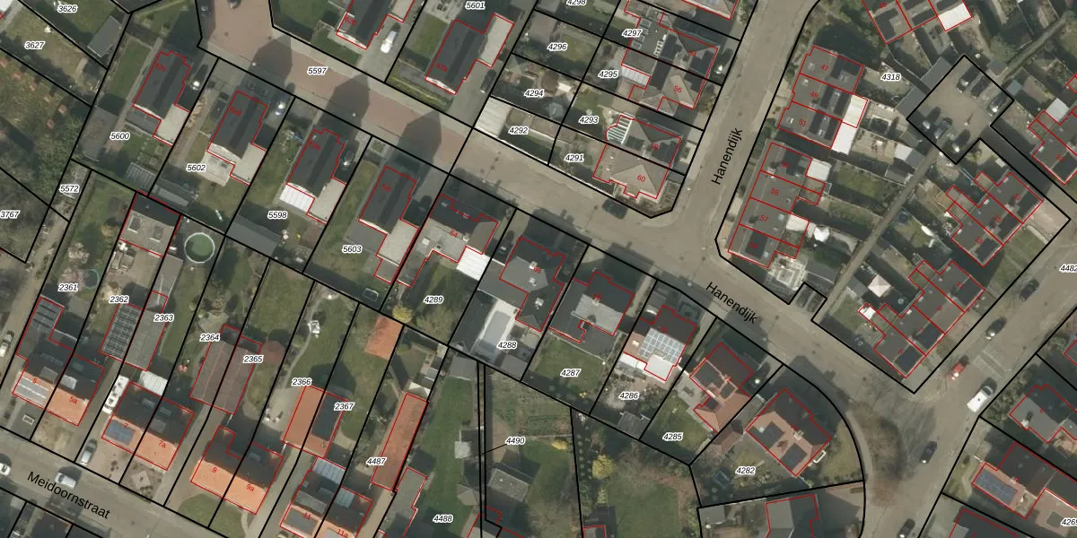 Het perceel waarop Hanendijk 66 staat heeft een oppervlakte van 430 m². Dit is een groot perceel. De perceeloppervlakte wordt geregistreerd door het Kadaster. Gedetailleerde informatie over de maten van dit perceel kunt u vinden in het rapport Kadastrale kaart met maatvoering van Hanendijk 66.