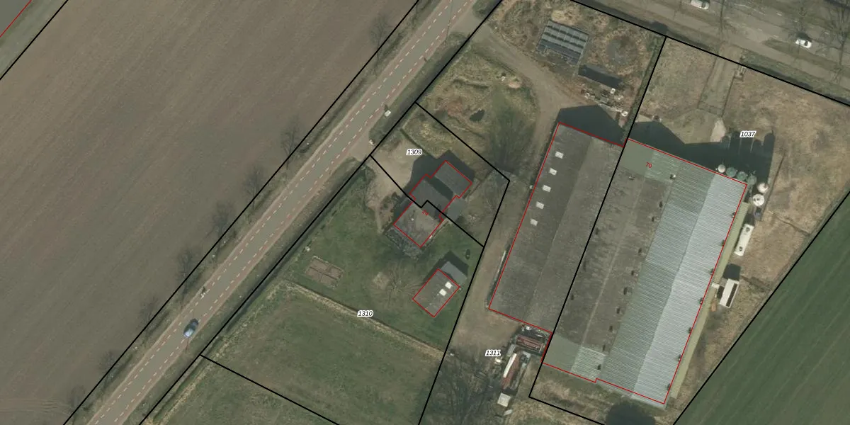 Het perceel waarop het adres ligt is BDL02-L-1310. De afkorting 'BDL02' staat voor kadastrale gemeente Budel. De gemiddelde perceelgrootte in Budel is 4696,69 m². Dit perceel is kleiner: de perceeloppervlakte bedraagt 2465 m². De grootste perceeloppervlakte in de kadastrale gemeente is 1,97 km². De kleinste oppervlakte bedraagt 0 m². Dit is het enige adres dat aanwezig is op het perceel. De laatste wijziging in het de Basisregistratie Kadaster (BRK) was op 14-11-2007.