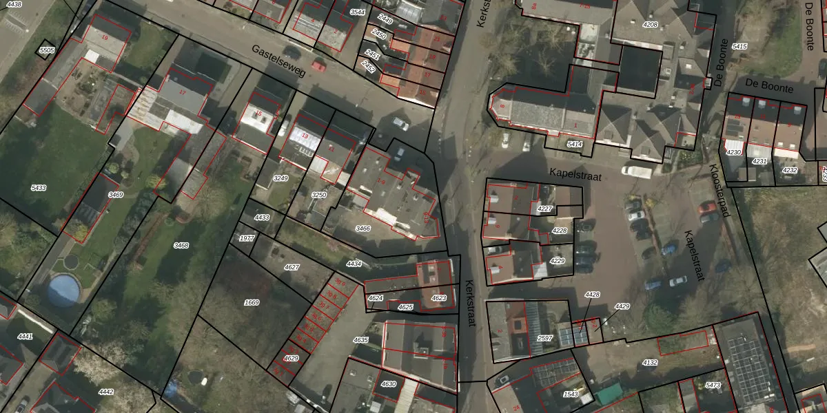 Kerkstraat 13 is gelegen op kadastraal perceel BDL02F3466. Deze kadastrale aanduiding is uniek en wordt gebruikt door het Kadaster om eigendomsrechten en andere zakelijke rechten vast te leggen. Het perceel maakt onderdeel uit van de kadastrale gemeente Budel.