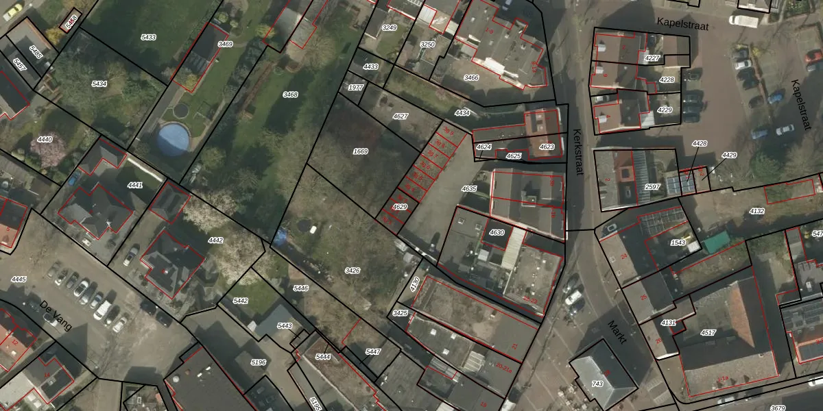 Het adres is gelegen op perceel 4629 in de sectie F en de kadastrale gemeente Budel. De kadastrale aanduiding is aldus BDL02-F-4629. Het perceel is 63 m² groot. Dat is kleiner dan de gemiddelde perceeloppervlakte in Budel, dat op 4698,32 m² ligt. De grootste perceeloppervlakte in de kadastrale gemeente is 1,97 km². De kleinste oppervlakte bedraagt 0 m². Op het perceel liggen in totaal 3 adressen. In de Basisregistratie Kadaster (BRK) werden de grenzen van het perceel geregistreerd op 02-03-2005.