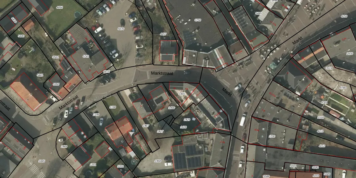 Het perceel waarop Marktstraat 1-b staat heeft een oppervlakte van 246 m². Dit is een middelgroot perceel. De perceeloppervlakte wordt geregistreerd door het Kadaster. Gedetailleerde informatie over de maten van dit perceel kunt u vinden in het rapport Kadastrale kaart met maatvoering van Marktstraat 1-b.