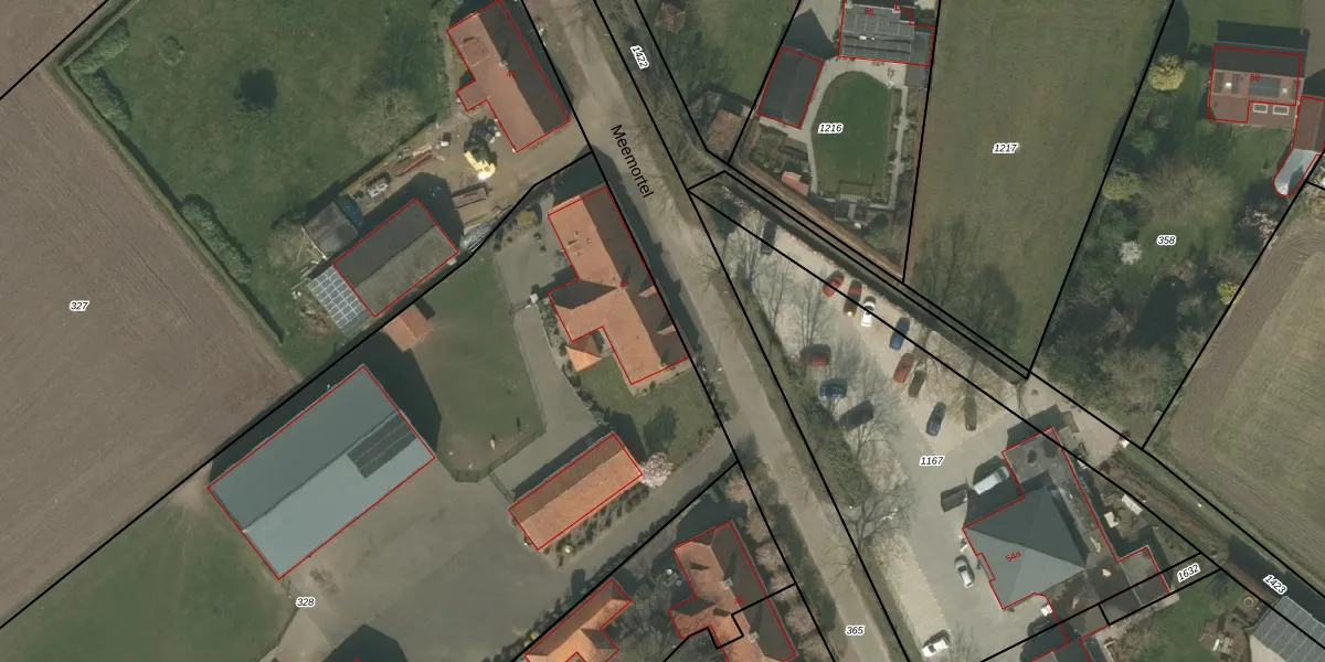 Het perceel waarop Meemortel 44 staat heeft een oppervlakte van 7540 m². Dit is een zeer groot perceel. De perceeloppervlakte wordt geregistreerd door het Kadaster. Gedetailleerde informatie over de maten van dit perceel kunt u vinden in het rapport Kadastrale kaart met maatvoering van Meemortel 44.