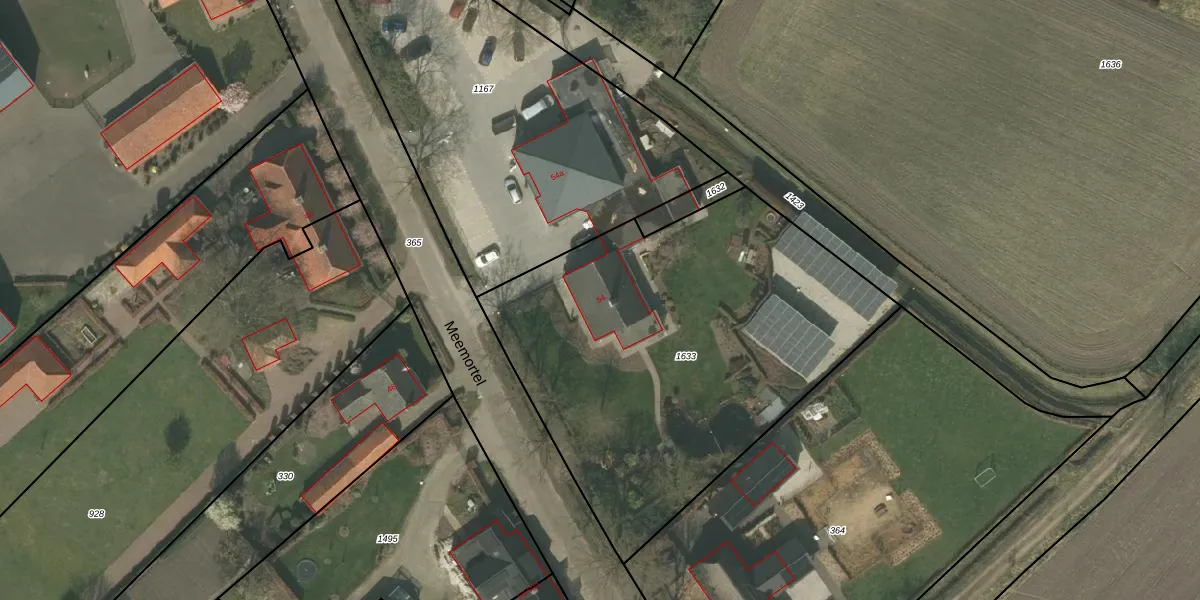 Meemortel 54 is gelegen op kadastraal perceel BDL02L1633. Deze kadastrale aanduiding is uniek en wordt gebruikt door het Kadaster om eigendomsrechten en andere zakelijke rechten vast te leggen. Het perceel maakt onderdeel uit van de kadastrale gemeente Budel.