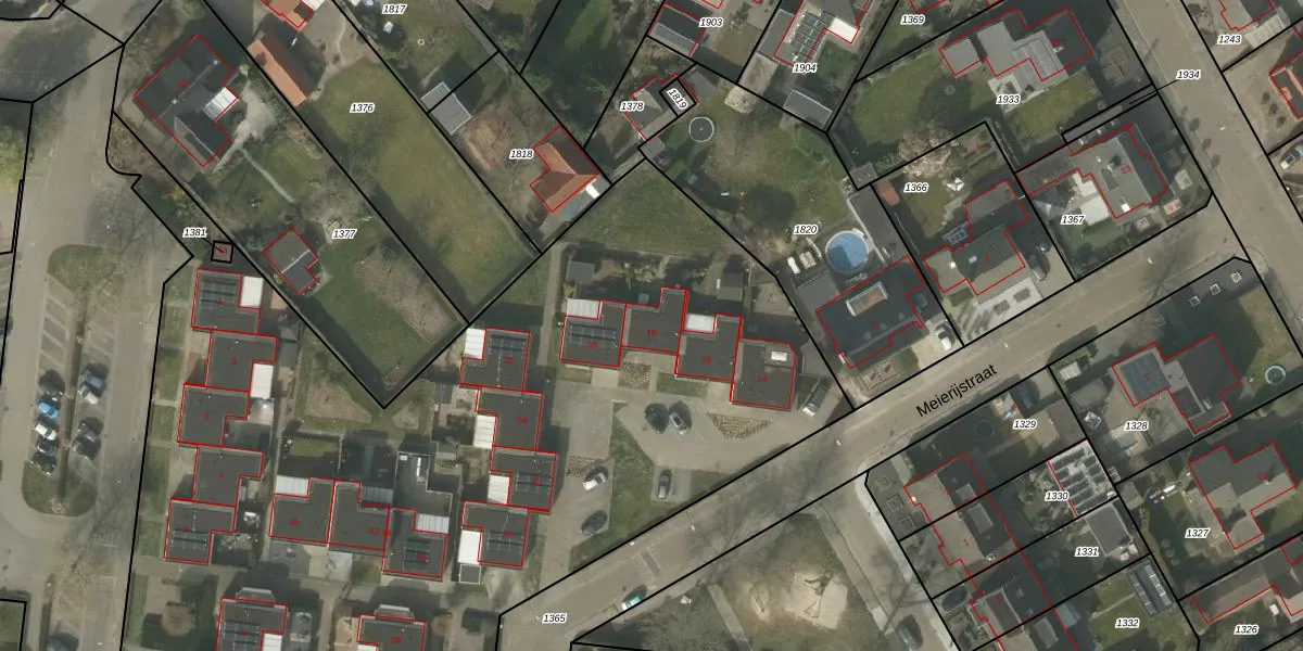 Het perceel waarop Meierijstraat 18 staat heeft een oppervlakte van 9619 m². Dit is een zeer groot perceel. De perceeloppervlakte wordt geregistreerd door het Kadaster. Gedetailleerde informatie over de maten van dit perceel kunt u vinden in het rapport Kadastrale kaart met maatvoering van Meierijstraat 18.