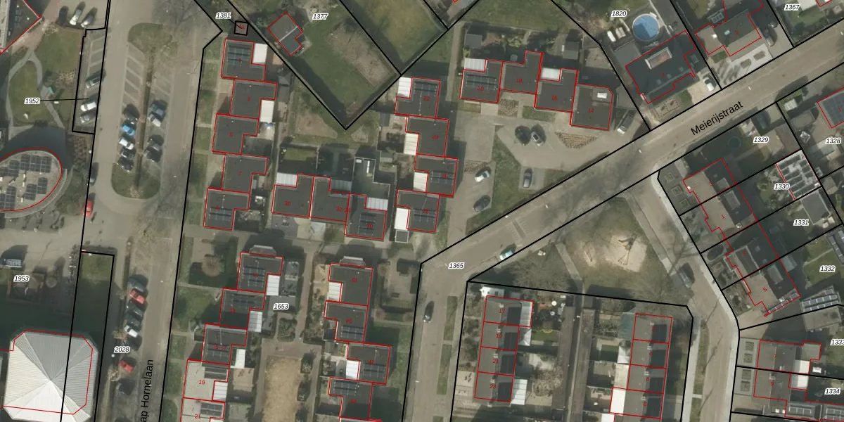 Het perceel waarop Meierijstraat 28 staat heeft een oppervlakte van 9619 m². Dit is een zeer groot perceel. De perceeloppervlakte wordt geregistreerd door het Kadaster. Gedetailleerde informatie over de maten van dit perceel kunt u vinden in het rapport Kadastrale kaart met maatvoering van Meierijstraat 28.