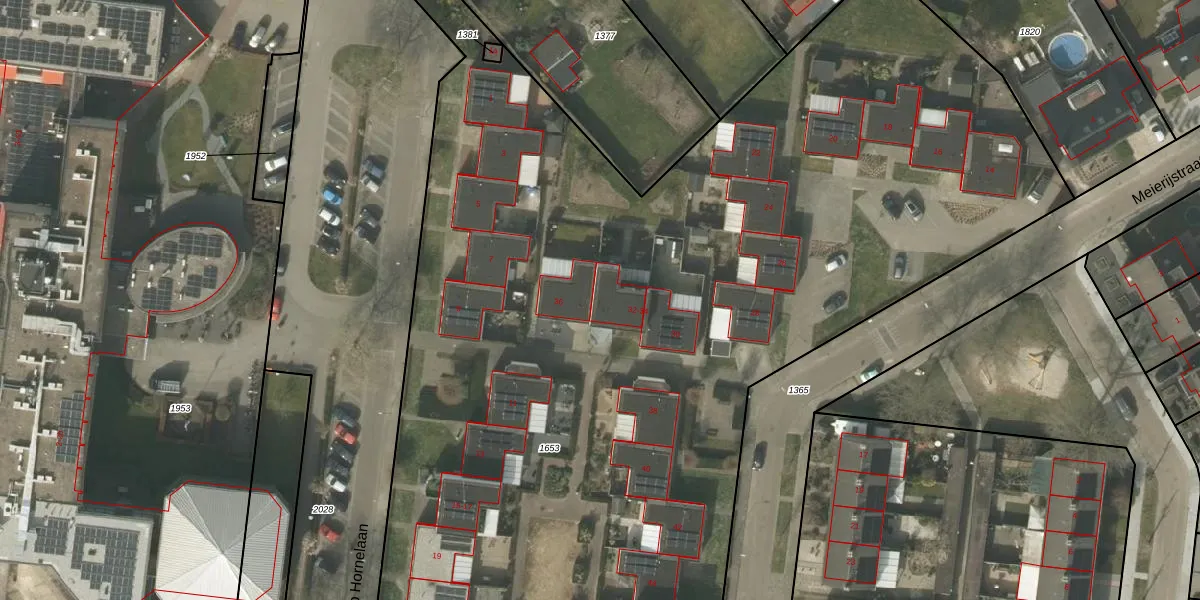 Het perceel waarop Meierijstraat 34 staat heeft een oppervlakte van 9619 m². Dit is een zeer groot perceel. De perceeloppervlakte wordt geregistreerd door het Kadaster. Gedetailleerde informatie over de maten van dit perceel kunt u vinden in het rapport Kadastrale kaart met maatvoering van Meierijstraat 34.