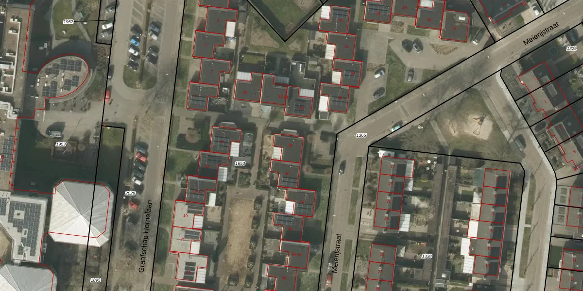 Het perceel waarop Meierijstraat 38 staat heeft een oppervlakte van 9619 m². Dit is een zeer groot perceel. De perceeloppervlakte wordt geregistreerd door het Kadaster. Gedetailleerde informatie over de maten van dit perceel kunt u vinden in het rapport Kadastrale kaart met maatvoering van Meierijstraat 38.