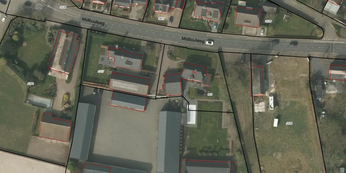 Midbuulweg 6 is gelegen op kadastraal perceel BDL02L903. Deze kadastrale aanduiding is uniek en wordt gebruikt door het Kadaster om eigendomsrechten en andere zakelijke rechten vast te leggen. Het perceel maakt onderdeel uit van de kadastrale gemeente Budel.